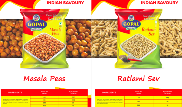 MASALA PEAS 084 RATLAMI SEV 085 See also different: BHAKHARVADI 067 WAFERS 061-064 BANANA WAFERS << Go back to Product List
